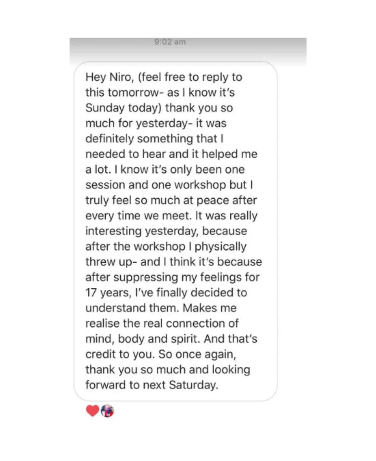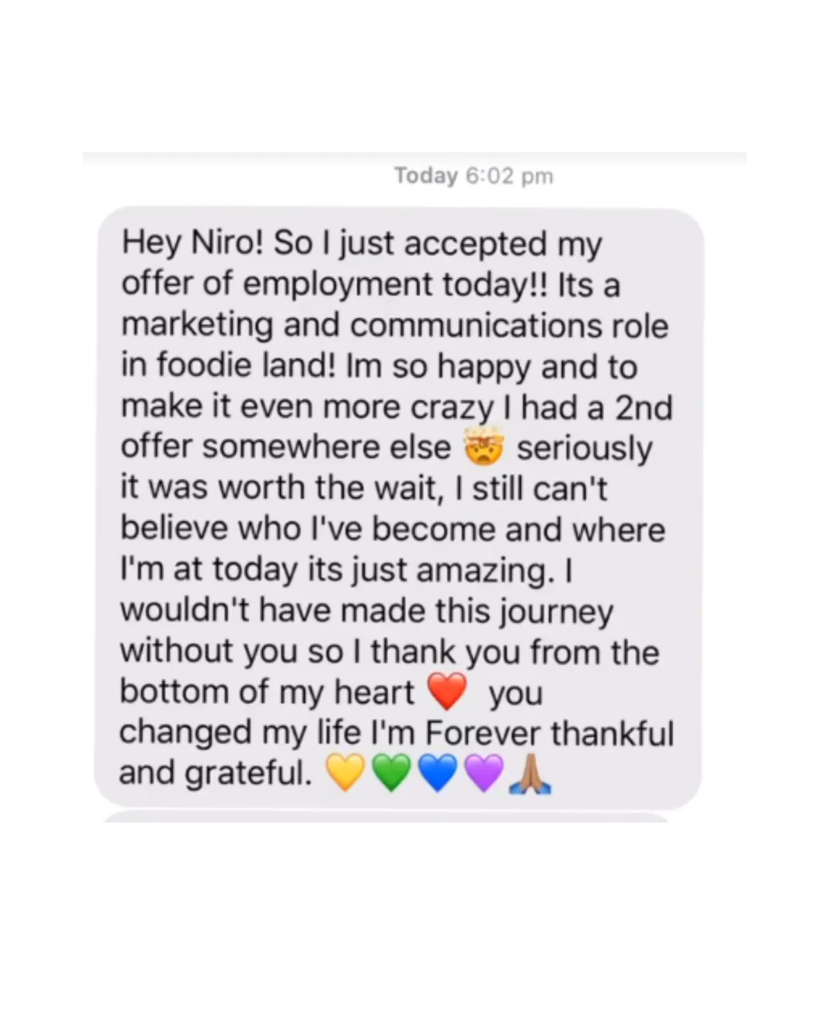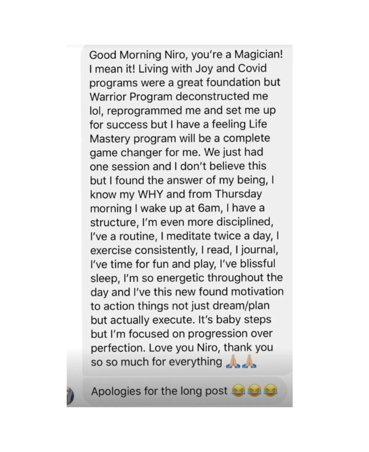Yes, you will be working directly with Niro. And will you also have access to other specialist coaches in areas outside Niro's specialties. Eg - Women in Leadership, Gut & Nutrien Health & Parenting.